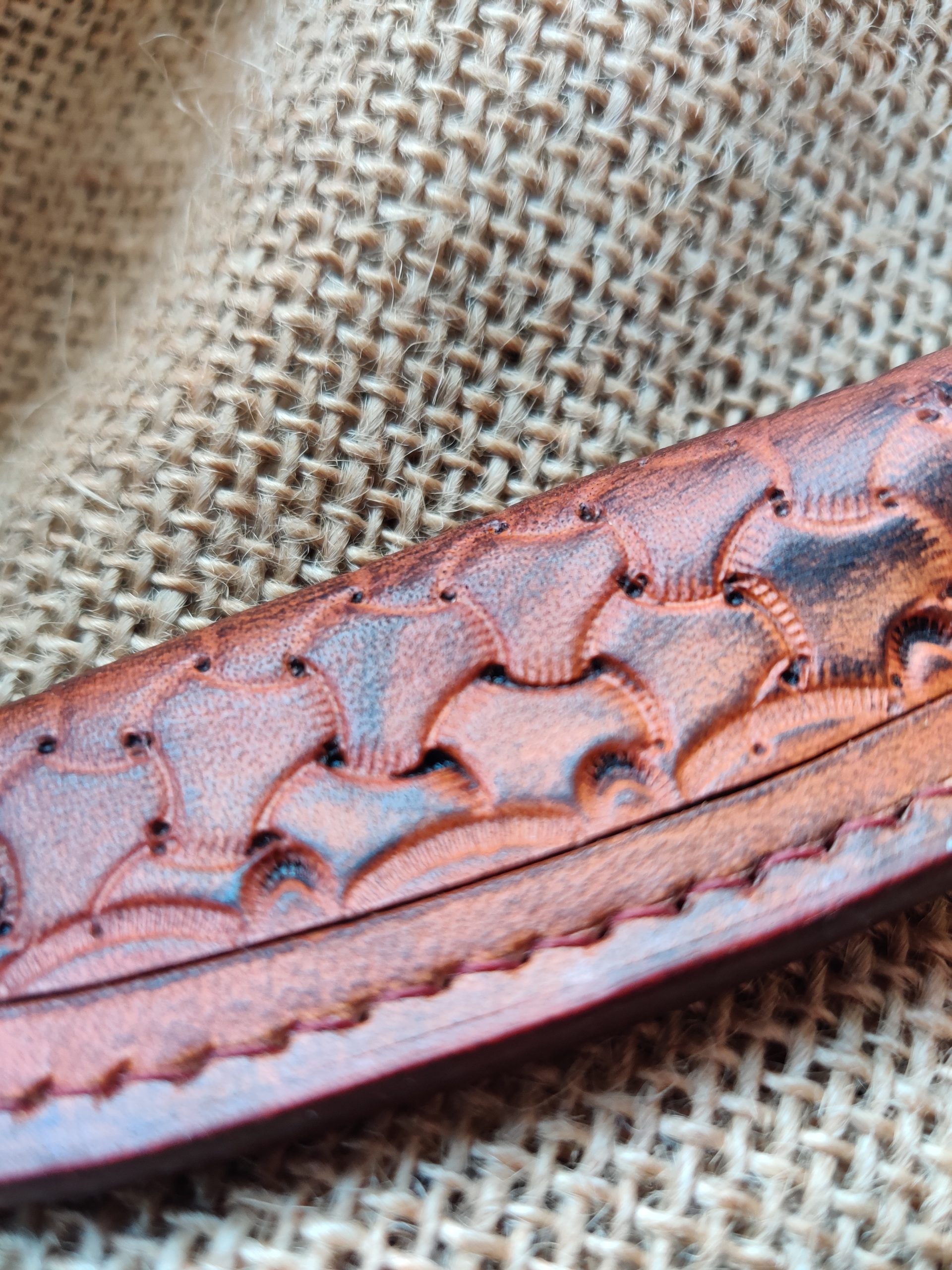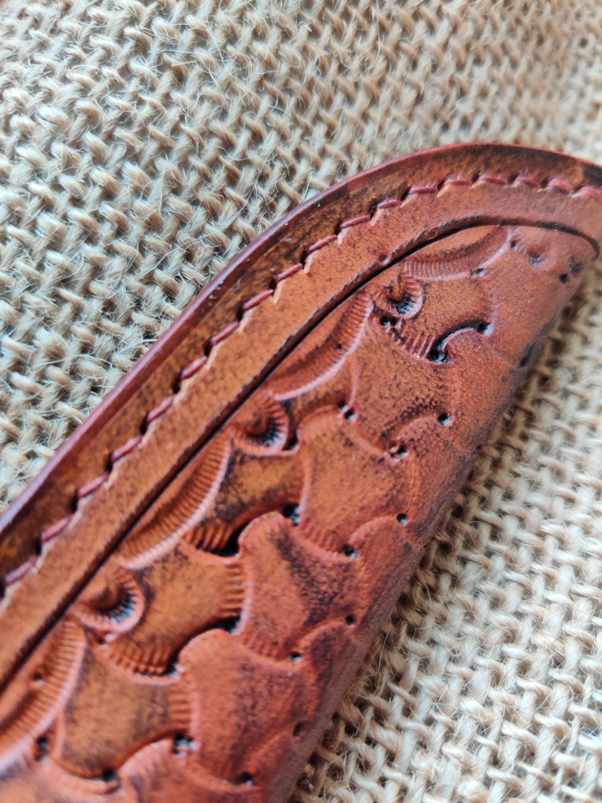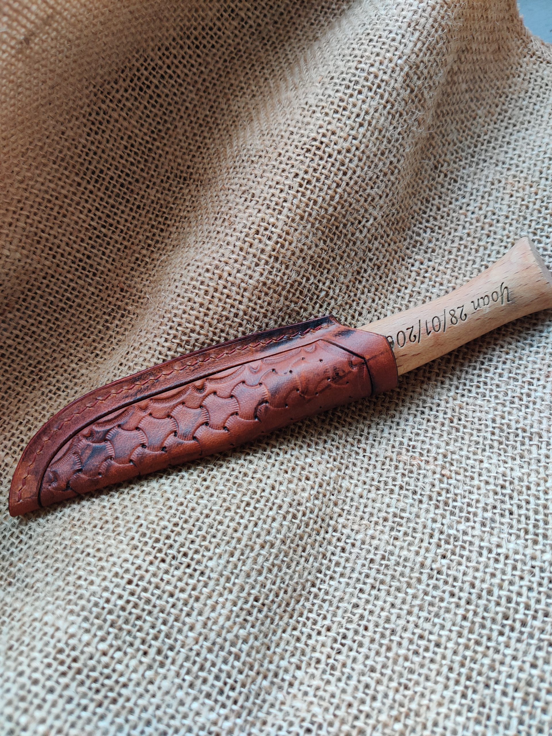 Cet article est là pour ça. Nous réalisons des étuis de couteau unique fait entièrement à la main, en cuir tannage végétal naturel que nous viendrons personnaliser à votre guise de la teinture au repoussage, c’est vous qui choisissez parmi les différentes personnalisations proposées par notre atelier.